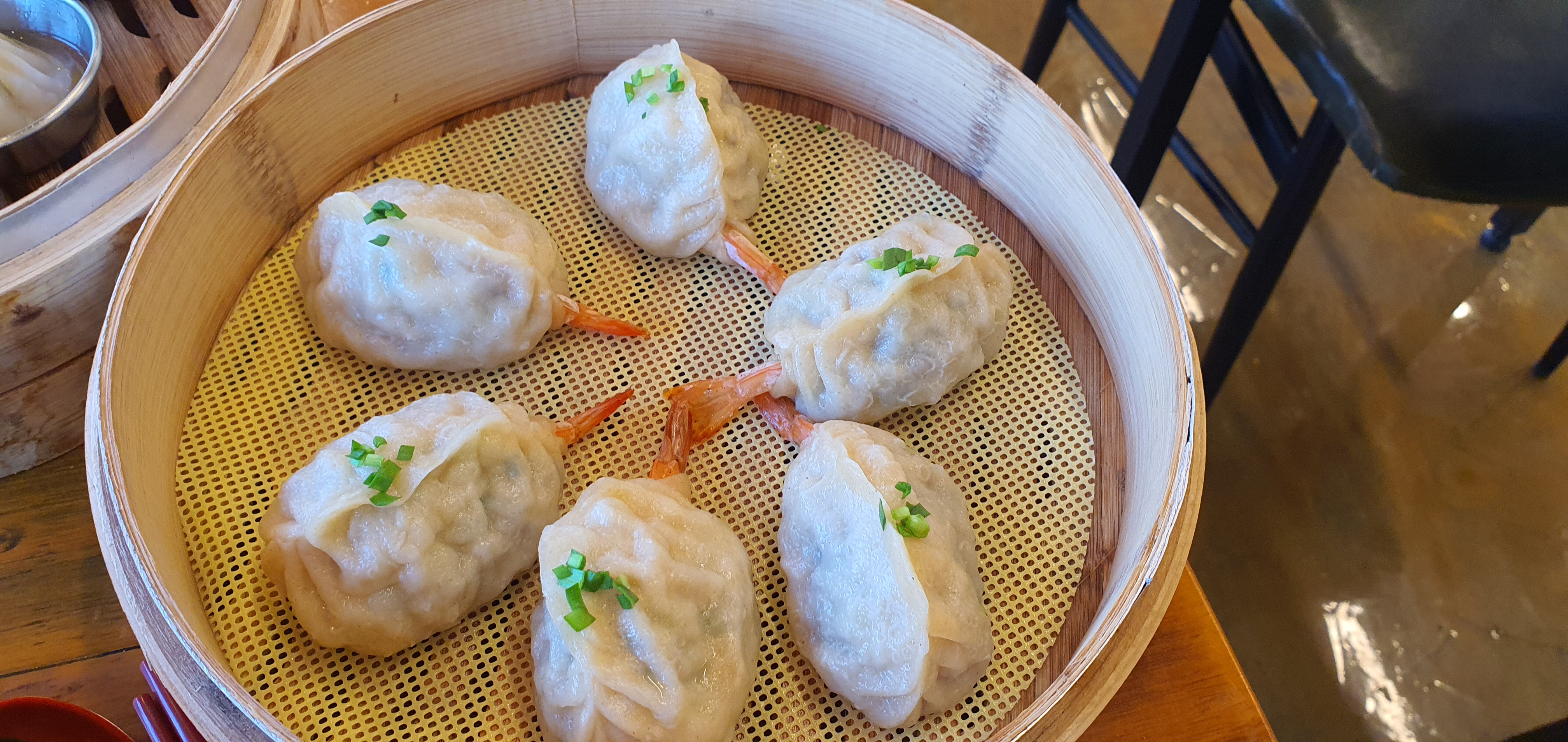 "우육탕면 니엔니엔"의 세번째 메뉴인 새우만두입니다. 한국에서는 고기만두, 김치만두에 이어 가장 흔하게 볼 수 있는 만두 종류입니다. 새우만두는 종류에 따라 여러 가지가 있지만 대부분 새우살이 들어가 일반 만두와는 달리 탱글탱글한 식감과 고소한 맛이 특징입니다.